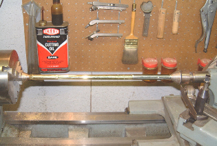 Before soldering the receiver to the leadpipe, I spin it on the lathe to make sure it's straight.