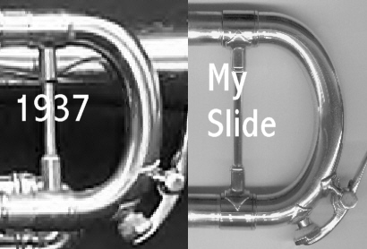 The slide I just made today (6-28-01) compared to the 1937. Note how the earlier Bachs had less "square" and more curve than the current Strad model (shown below).